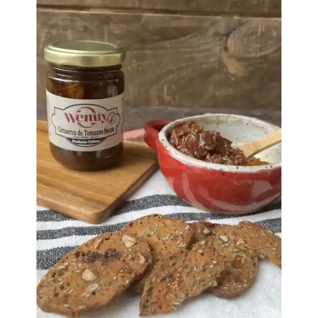 Conserva de Tomates Secos. Dale a tus comidas un sabor intenso con nuestra conserva de tomates secos. Puedes usarlo en aperitivos y también para realzar el sabor de salsas de tomate, ensaladas etc. Certificado Libre de glúten 160GR