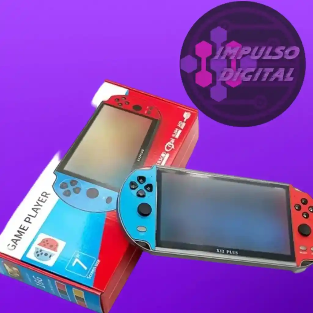 Pantalla grande de 7" (pulgadas), de alta definición con excelente calidad de imagen. Consola de juegos multifunción. También soporta video, música, E-libro y otras funciones. Memoria de 16 GB incorporada, que admiten la expansión de la memoria con tarjeta SD. Compatible con interfaz AV. Salida de vídeo, conexión a TV u otras pantallas Conectar al puerto USB del computador para descargar los juegos. Formato de vídeo: BMVB FLV AVI MP4 3GP (soporta reproducción de vídeo 1080 * 720P). Formato de música: MP3 WMA WAV, etc. Expansión máxima de memoria: Máximo tarjeta de 32GB (no incluida). Empaque incluye 1 Consola de juegos portátil X12 Plus. 1 Auricular (audífonos). 1 Cable AV. 1 Cable USB. 1 Manual de usuario en idioma inglés y chino