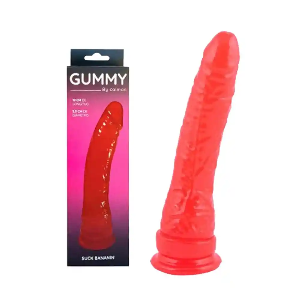 El consolador Gummy Suck Bananin Rojo es cristalino, de jelly, muy flexible, suave y libre de Ftalatos. Tiene una apariencia realística, sumando su color de fantasía rojo y distintas texturas entregadas por sus venas realzadas y un glande de diámetro pequeño que luego va aumentando de tamaño a medida que se acerca a la base del consolador. Posee una ventosa adherente a superficies planas tanto horizontales como verticales, y es compatible con arnés. Características: Ventosa adherente Material: PVC suave y flexible Color: Rojo Largo: 19 cm. Diámetro: 3,5 cm. Observaciones: A prueba de agua Libre de Ftalato Recomendaciones: Mantener lejos del calor. Lavar antes y después de cada uso. Lavar con agua y jabón neutro. Apto para Lubricantes a base de agua o híbridos. Guardar en un sitio limpio y seco, sin mezclar con otros juguetes. No compartir juguete con otras personas. Utilizar preservativo si se utiliza indistintamente en ano y vagina.