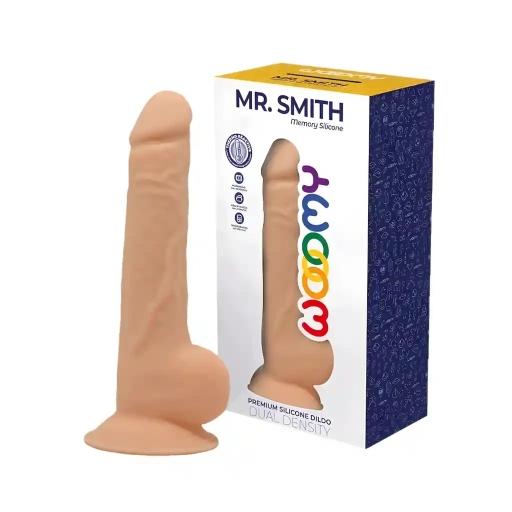 Dildo de doble densidad con piel de silicona premium y relleno de Silexpan. Es firme, pero ergonómico, se adapta a tu cuerpo y a la presión ejercida. Mr. Smith es súper suave y agradable al tacto, además, disfruta de una estimulación sin manos gracias a la potente ventosa que te permitirá ponerla sobre cualquier superficie plana o en un arnés universal. Posee dos testículos y un glande de forma realista. Con su característica textura, grosor y flexibilidad se volverá tu consolador favorito. Es termo reactivo, con el calor Mr. Smith será más blando y flexible, adaptándose a cada rincón de tu cuerpo, y cuando este frío, el consolador será más firme y duro. Características: Compatible con arneses. De Silicona Premium y Silexpan. Termo reactivo. Color: Beige. Medidas: Largo total: 17,5 cm. Insertable: 12 cm. Diámetro: 3,5 cm. Recomendaciones: Lavar con agua tibia y jabón neutro antes y después de usar. Usar siempre con lubricante híbrido o a base de agua.