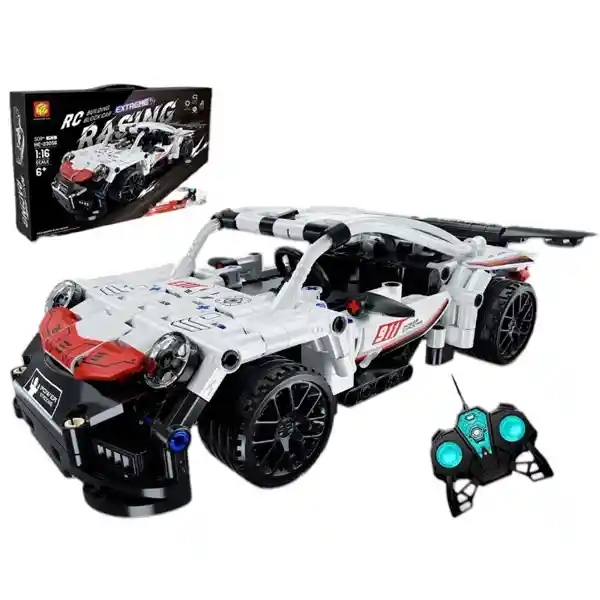 El R/C Racing Blocks Car escala 1:16 combina la emoción del control remoto con la creatividad de las 509 pcs de construcción. Funciona con una batería recargable de 3.7V 500mAh (incluye cable USB), ofreciendo potencia y diversión a toda velocidad. Ideal para niños que aman construir, jugar y correr sin límites. Medidas: 53x36cm caja Carga: USB+2 AA control