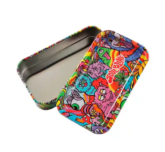 El Soulblime Contenedor con Tapa-Bandeja es un accesorio multifuncional ideal para mantener tus materiales organizados y al alcance. Esta elegante cajita metálica sirve como contenedor para tus papelillos, boquillas y filtros, y también se convierte en una bandeja de enrolado para evitar el desperdicio de tus flores. Compacto y portátil, es perfecto para llevar contigo a cualquier lugar, combinando funcionalidad y estilo en un solo producto. El diseño del Soulblime Contenedor con Tapa-Bandeja es igualmente impresionante. Disponible en tres llamativos diseños, puedes elegir entre los icónicos monstruos psicodélicos de Soulblime, los ovnis divertidos que añaden un toque juguetón, o el espacio galáctico con lunas con una atmósfera mística, planetas, naves espaciales y estrellas. Cada diseño no solo añade un toque personal y único, sino que también convierte cada uso en una experiencia visualmente atractiva.
