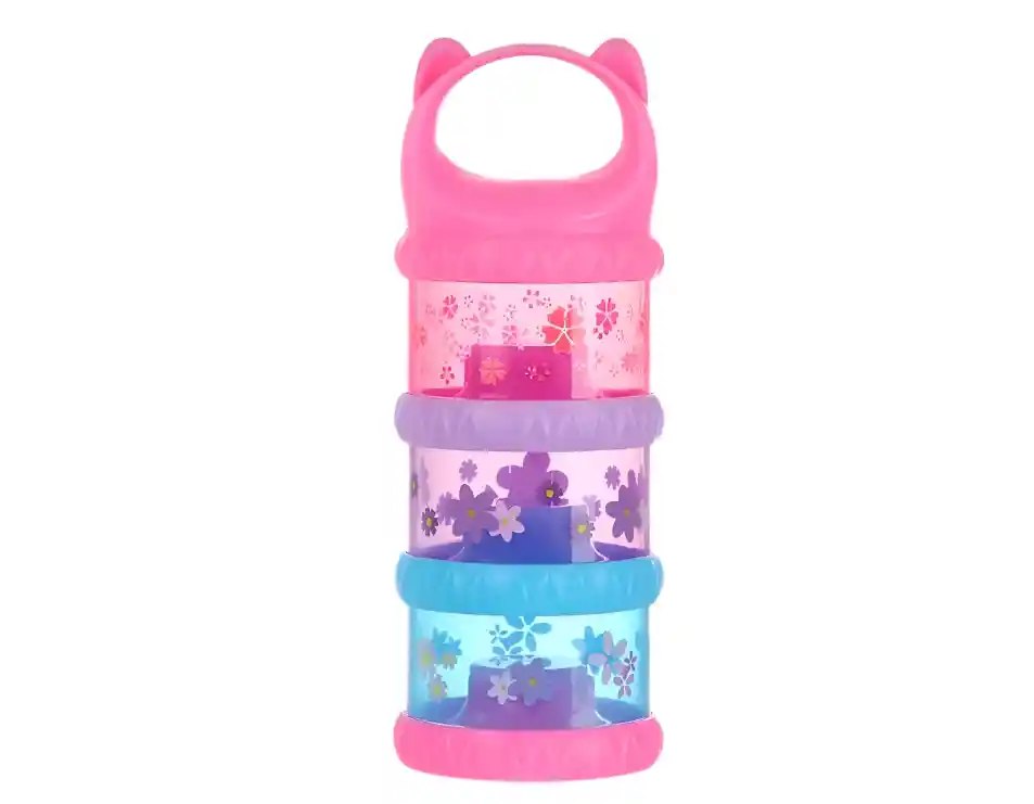Dispensador de leche, fórmula o alimentos. 3 compartimentos Libre de BPA Disponible en hermosos diseños. Medidas: 21* 7,8 cms