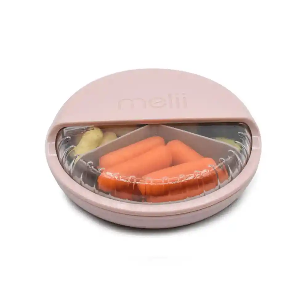 Porta Colaciones Giratorio para Bebés y Niños Haz que la hora de la colación sea más práctica y entretenida con el Contenedor Spin Snacks Melii. Su diseño giratorio con compartimentos separados permite llevar diferentes snacks en un solo envase, evitando derrames y mezclas indeseadas. Compacto, liviano y fácil de usar, es ideal para la mochila del jardín, el coche o los paseos en familia. A los niños les encanta elegir su snack girando la tapa, y a los papás y mamás les da tranquilidad saber que los alimentos se mantienen seguros y frescos. Un accesorio infaltable para simplificar la vida familiar. Tips de uso Llena los compartimentos con frutas, galletas, cereales o frutos secos. Gira la tapa para acceder solo al snack que quieras, sin mezclar sabores. Lava antes del primer uso con agua tibia y jabón. Apto para lavavajillas (rejilla superior). Perfecto para paseos, viajes o para llevar al jardín infantil. Especificaciones Material: Plástico de alta calidad, libre de BPA, PVC y ftalatos. Incluye: 1 contenedor con 3 compartimentos y tapa giratoria. Capacidad: 118 ml cada compartimiento, total de 355 ml. Peso: Liviano y fácil de transportar. Edad recomendada: Desde los 6 meses en adelante. Uso: Almacenamiento de snacks secos o pequeños trozos de fruta. Limpieza: Apto para lavavajillas (rejilla superior). Marca: Melii Origen: Canadá.