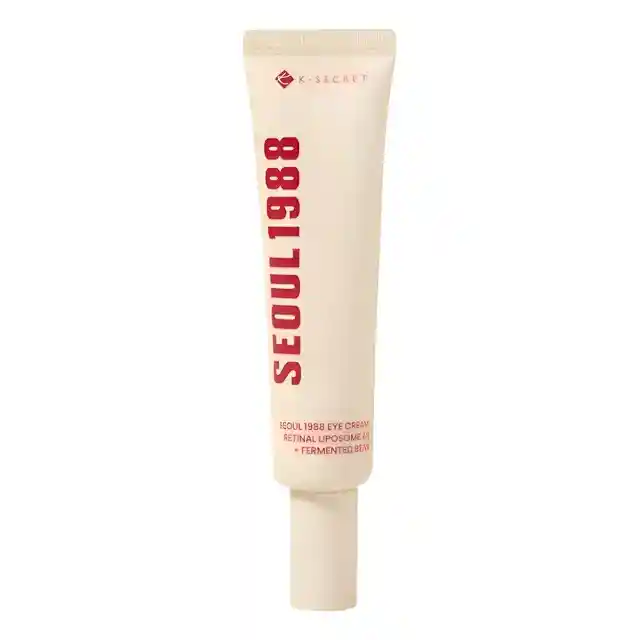 Contorno de ojos K-Secret Seoul 1988 con retinal liposome y extracto de porotos fermentados, formulado para reducir líneas finas, arrugas y signos de fatiga, mejora la elasticidad, hidrata profundamente y aporta firmeza en la zona del contorno, su textura ligera se absorbe rápidamente dejando la piel suave, luminosa y revitalizada, ideal para rutina anti edad, uso diario, producto original K-Secret, hecho en Corea del Sur.