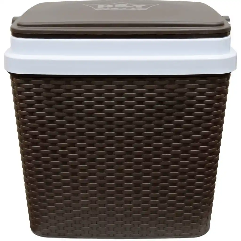 Hermoso diseño estructurado y tamaño ideal, con buen acabado dando una excelente presentación para tus camping, reuniones o simplemente paseos en familia. Especificaciones: Marca - Reyplast Ancho - 43 cm Alto - 44 cm Largo - 31 cm Dimensiones totales: 43 cm x 44 cm x 31 cm Material - Polipropileno Color - Marrón Peso del producto - 2.34 kg Cuenta con ruedas: NO Capacidad volumétrica: 35 Litros