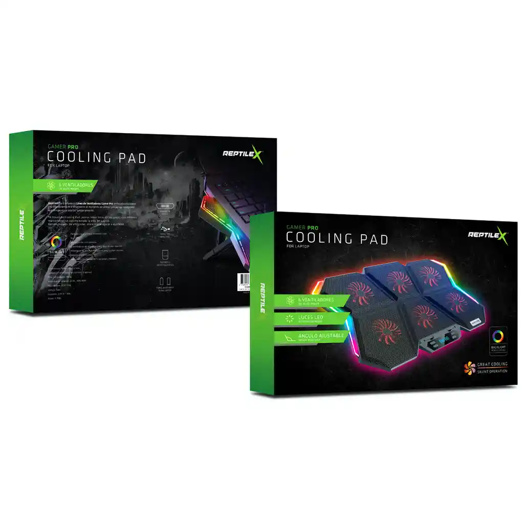 Reptilex a diseñado su linea de ventiladores gamer pro enfocado en obtener un alto sistema de enfriamiento al momento de utilizar un laptop, otorgando una temperatura baja de funcionamiento. Podras tener horas de los juegos mas intensos manteniendo un optimo estado la vida del laptop. Retroiluminado, de alto poder, silencioso al operar y ajustable. Dimensiones: 426 x 280 x 37mm Tamaño del ventilador: 60 x 60 x 15 (6 piezas) Peso del producto: 840g Velocidad de rotacion: 2600 +- 10% RPM Flujo de aire: 73.25 CFM Cooling pad gamer pro. | Pantalla Led y sistema retroiluminado. | Dual USB. | 6 Ventiladores de alta velocidad y flujo de aire superior. | Interruptor de ajuste bidireccional para rotación. | Soporte antideslizante. | Compatible con laptos de 17 pulgadas y menores. | Tamaño ventilador: 60 x 60 x 15 (6 piezas). | Velocidad de rotación: 2600 +-10% RPM. | Flujo de aire: 73.25 CFM