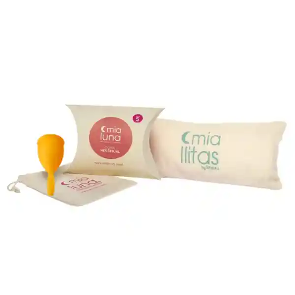Pack Copa Menstrual MiaLuna Naranja Talla S + Toallas Higiénicas Ecológicas: Miallitas Talla M – Colores Surtidos – 4 Unidades