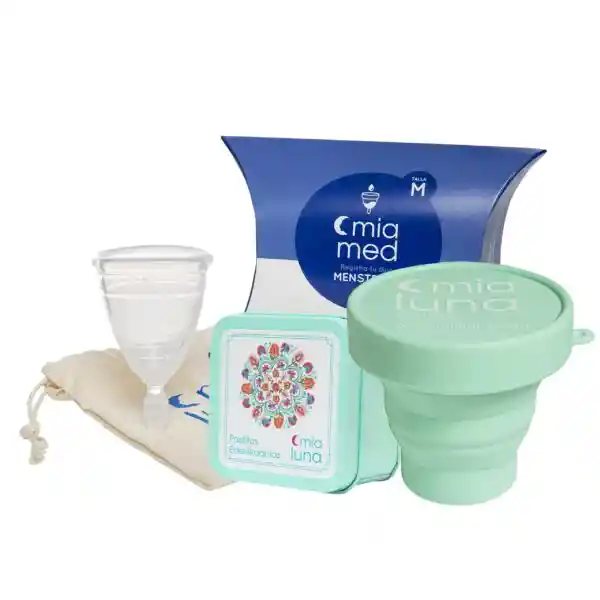 Copa Menstrual MiaMed Talla M + Vaso Esterilizador MiaClean + Pastillas Esterilizadoras – 6 Unidades con caja ¿CÓMO USAR TU MiaMed? Debes usar tu copa menstrual MiaMed por un ciclo completo, durante todo el día y la noche. Cámbiala de 3 a 4 veces al día, llevando el registro de los mililitros (ml) que aparecen en tu copita. Anota estos ml en tu libreta de registro y de esta forma vas a saber lo que menstrúas mes a mes. *MiaMed fue diseñada en conjunto con el Departamento de Obstetricia y Ginecología de la Universidad de los Andes. Talla M: Largo 7,5 cms / Diámetro 4,5 cms / Capacidad flujo 20 ml.
