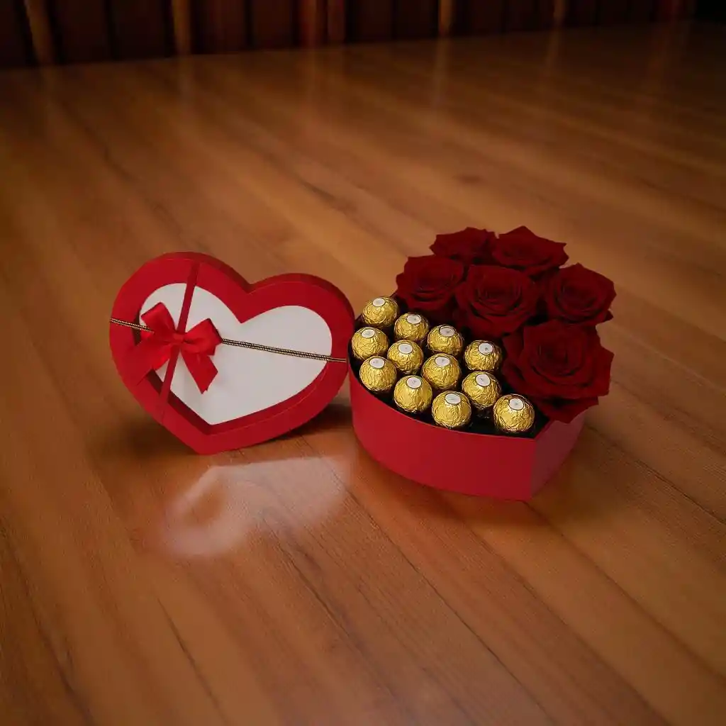 HERMOSO CORAZON CON 6 ROSAS Y 11 CHOCOLATES PARA REGALAR EN CUALQUIER OCASIÓN
