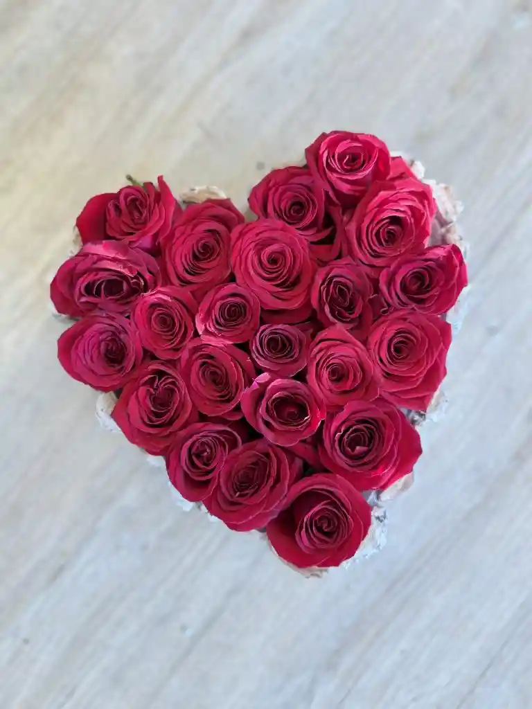 ¡Arreglo floral ideal para todos nuestros enamorado! Incluye: Entre 18-20 rosas rojas Base de madera rústica Arreglo floral con espuma floral Tips de cuidado: Agregar agua todos los días a la espuma floral para que siempre estén hidratadas las rosas. *Ancho aproximada 26 cms. *Alto aproximado 25 cms.
