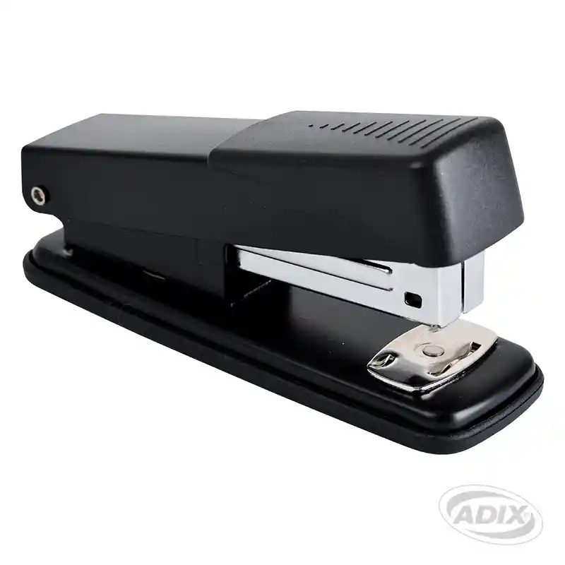 Corchetera metálica mediana. Color negro Corchetera metálica, tamaño mediano, color negro. Capacidad para 20 hojas aproximadamente. Capacidad de carga 100 corchetes tipo 24/6 y 26/6. De fácil uso y recarga. Medidas de 10,7 x 3,5 x 5,2 cm aproximadamente.
