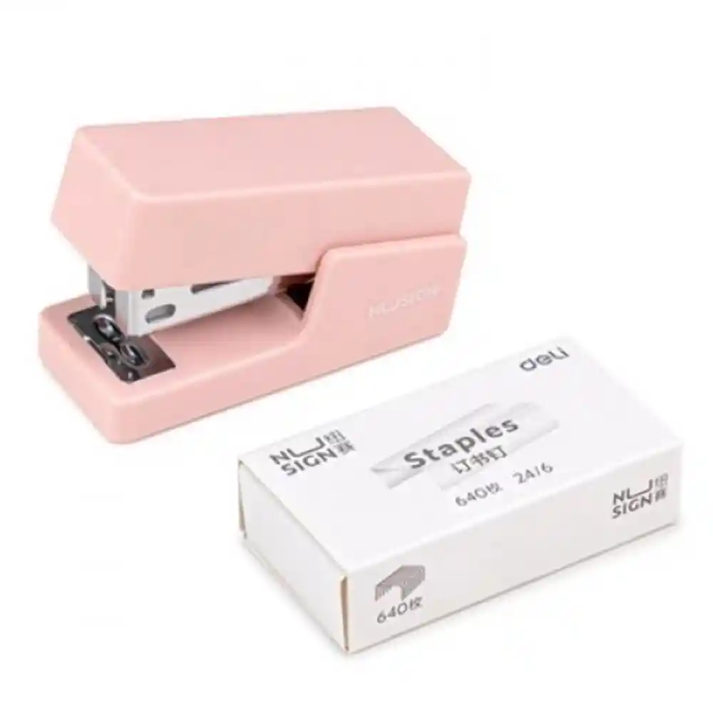 Grapadora mini Deli Linfini N10 24/6 (15 hojas) rosa 15 grapas blíster metal/plástico
