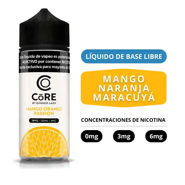 Déjate llevar por una explosión de frescura con el nuevo CORE Mango Orange Passion.Una vibrante mezcla afrutada que combina la dulzura del mango, la acidez de la naranja y el toque exótico del maracuyá, que te transportará a un paraíso tropical de inmediato.