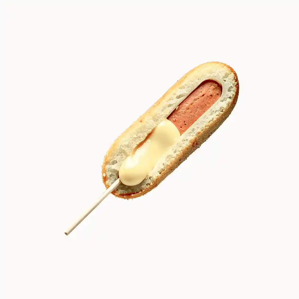 Disfruta de nuestra Corndog Vegetariana, elaborada con queso gouda derretido y un sabroso sucedáneo de salchicha vegetal, todo envuelto en una masa crujiente y dorada. Una alternativa sin carne, pero llena de sabor y textura. Ideal para quienes buscan una opción diferente y deliciosa.