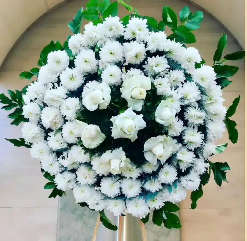 HERMOSA CORONA FLORES BLANCAS PARA DESPEDIR A LAS PERSONAS QUE ESTIMAMOS