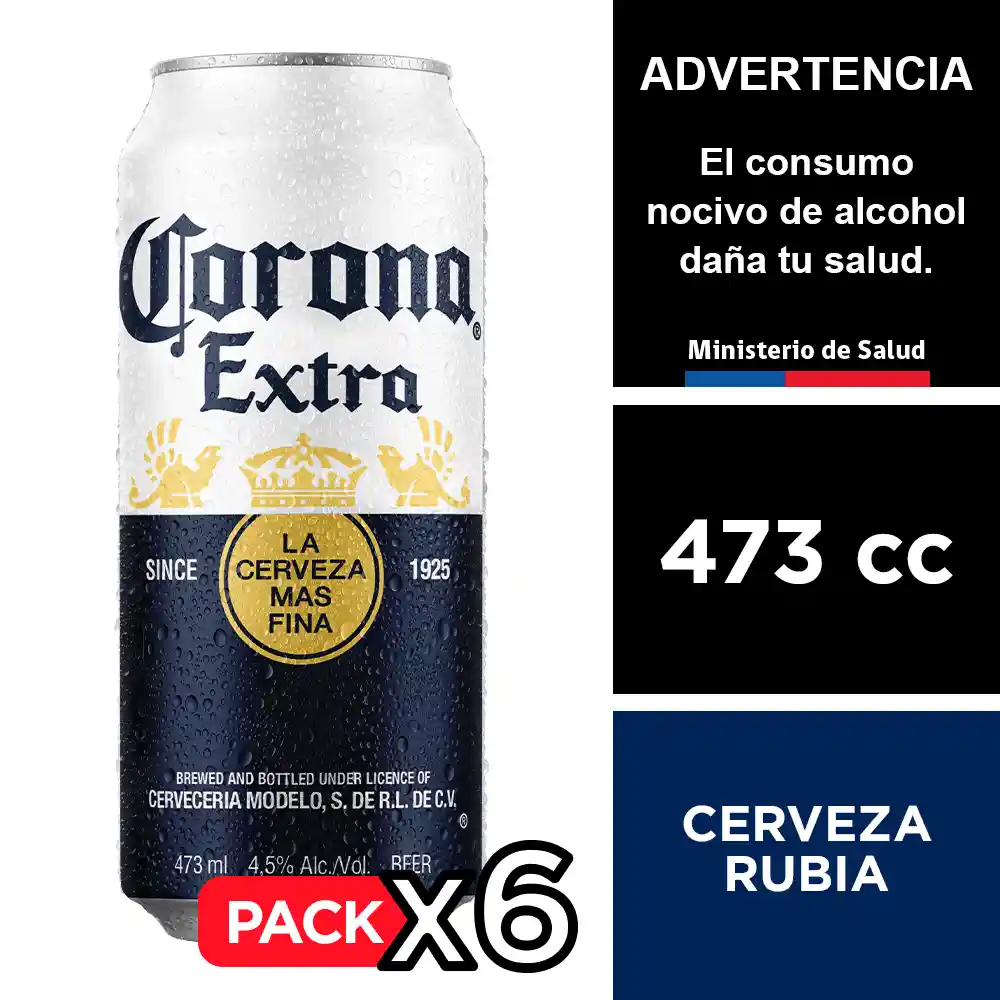 Disfruta de la refrescante Cerveza Corona, con su suave 4,5° de alcohol en un práctico pack de 6 latas de 473 cc. ¡El acompañante perfecto para momentos relajantes y sabrosos!