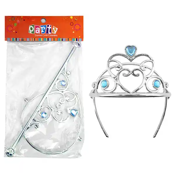 Corona Plastica Pleg.plateado 3 Piedras Celeste