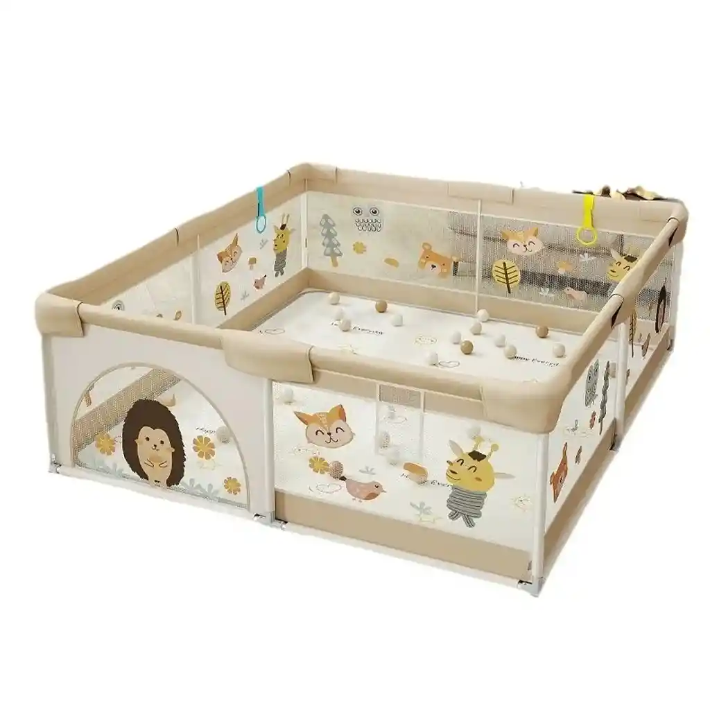 Espacio amplio, seguro y divertido para que tu bebé juegue y se desarrolle con total tranquilidad. Características principales: Medidas amplias: 180 x 200 cm Ideal para que el bebé gatee, juegue y se mueva con libertad. Incluye 60 pelotas de colores Perfecto para estimular la motricidad y convertirlo en mini piscina de pelotas. Diseño con dibujos infantiles Decoración tierna y atractiva para los más pequeños. Malla lateral transpirable Permite ver al bebé en todo momento y mejora la ventilación. Estructura firme y estable Base reforzada y soportes resistentes para mayor seguridad. Fácil armado y desarmado Se instala rápidamente y es práctico para guardar. Incluye colgantes interactivos Estimulan el juego y la coordinación.
