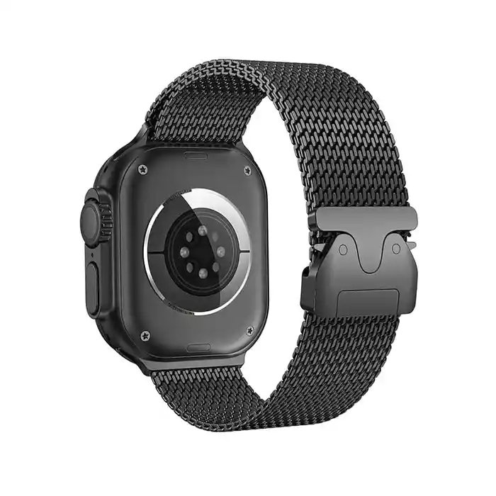 Correa Acero Inoxidable - Modelo Milanes / Broche Mariposa - Negra Cambia el diseño de tu Apple Watch con esta correa con estilo y moderna, elaborada con acero inoxidable. De muy fácil instalación, la correa se instala en un abrir y cerrar de ojos gracias a su sistema de enganche mariposa. Ideal para cambiar de aires y no caer en la rutina, aunque seguramente la llevarás todos los días. CARACTERISTICAS: Diseño único Completamente de acero inoxidable Aspecto moderno Material de alta resistencia Fácil de poner y quitar DISPONIBLE EN: 42 MM Serie 1 / 2 / 3 44 / 45 / 46 MM 49 MM Ultra NO COMPATIBLE CON 42 MM SERIE 10 Apple Watch Serie 1 / 2 / 3 / 4 / 5 / 6 / 7 / 8 / 9 / 10 / SE / Ultra