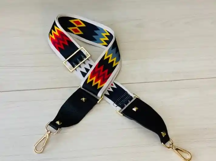 Correas para carteras o cámaras de foto. Distintos diseños, con un enganche en cada extremo de color dorado. Son ajustables, el mínimo de correa es 80 cm de largo y el máximo 120 cm.