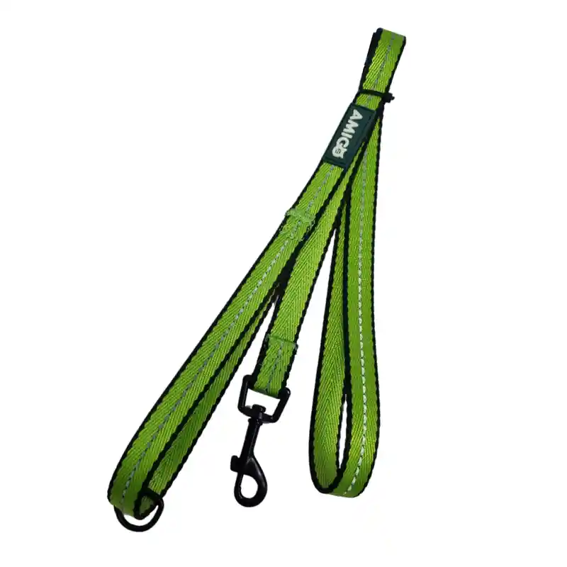 Correa para perros elaborada en Nylon con agarre por asa ideal para pasear con su mascota chicas o medianas en cualquier entorno, gracias a su resistencia al esfuerzo y a todo tipo de condiciones ambientales. Especificaciones: Material: Nylon Color: Verde Dimensiones de largo: 110 cm Dimensiones de ancho: 2 cm Contenido: 1 Correa.