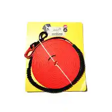 La Correa larga 10 mts arrastre es una correa larga recomendada para el entrenamiento a distancia y para pasear con tu perro en zonas abiertas en las que necesitas tenerlo al alcance en situaciones de emergencia. Es una correa que se engancha principalmente al arnés y le puedes dar una libertad supervisada pudiendo sujetar la correa estando a 10 metros de él y evitando que se aleje o que se acerque a otros perros o personas. La correa es de “Arrastre”, es decir, está diseñada para que sea resistente a la constante tracción con la tierra o cemento y evitar que se deshilache comparado con otros materiales. Recomendaciones de Uso de la Correa larga 10 mts Utiliza la correa en superficies planas o con la menor cantidad de objetos, como la playa por ejemplo. Evita su uso en zonas como bosques debido a que por la gran cantidad de árboles o plantas, la correa puede quedar enredada. Utiliza preferentemente un arnés para enganchar la correa, debido a que si tienes que sujetar de forma repentina a tu perro y este lleva un collar, puede generar una fuerte e innecesaria presión en su cuello. Utiliza principalmente en zonas abiertas espaciosas con bajo tránsito de personas. No le des los 10 metros a tu perro mientras caminas por la calle porque corres el riesgo de sufrir o provocar un accidente. Color Disponible Rojo Especificaciones Técnicas de la Correa larga Cinta de pvc de 1,5 cm de ancho x 10 metros de largo Recomendada para perros hasta los 40 kg de peso CARACTERÍSTICAS: Sin mango. Con asa acolchada. Incluye material reflectante, esto facilita la visibilidad en paseos nocturnos. Ideal para el adiestramiento de perros, la educación o paseos regulares. Mosquetón extra robusto para sujetar al collar. Estos cinturones tienen un revestimiento suave y tienen el aspecto y la sensación del cuero. La correa recubierta de PVC no acumula humedad, humedad ni suciedad como cadenas de perro de tela. Es fácil limpiar el cinturón. Un paño con agua y jabón es suficiente para eliminar cualquier suciedad y mugre. Secado rápido. Este tipo de correa para perro puede mantener un buen agarre incluso en condiciones húmedas.