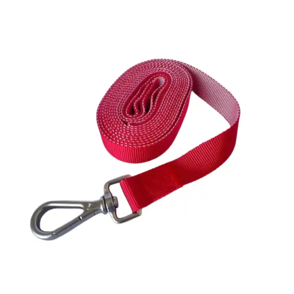 Características: - Correa elaborada de poliéster suave y resistente - Tiene un mango acolchado para amortiguar tirones - Su gancho mosquetón, es giratorio en 360° para evitar enredos - Sus 3 metros de largo, entregan una mayor libertad a tu perrito, para que puedan disfrutar mejormente el paseo o lo puedas entrenar fácilmente - Dimensiones: Largo: 3 mts Ancho: 2,5 cm - Color: Rojo