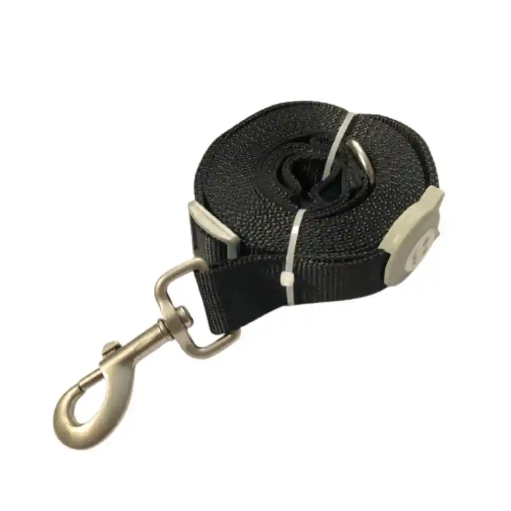 Características: - Correa elaborada de poliéster suave y resistente - Tiene un mango acolchado para amortiguar tirones - Su gancho mosquetón, es giratorio en 360° para evitar enredos - Sus 3 metros de largo, entregan una mayor libertad a tu perrito, para que puedan disfrutar mejormente el paseo o lo puedas entrenar fácilmente - La correa tiene un dispositivo de plástico, que permite ajustarla y acortarla a 1,5 mt. - Dimensiones: Largo: 3 mts Ancho: 2,5 cm - Color: Negra