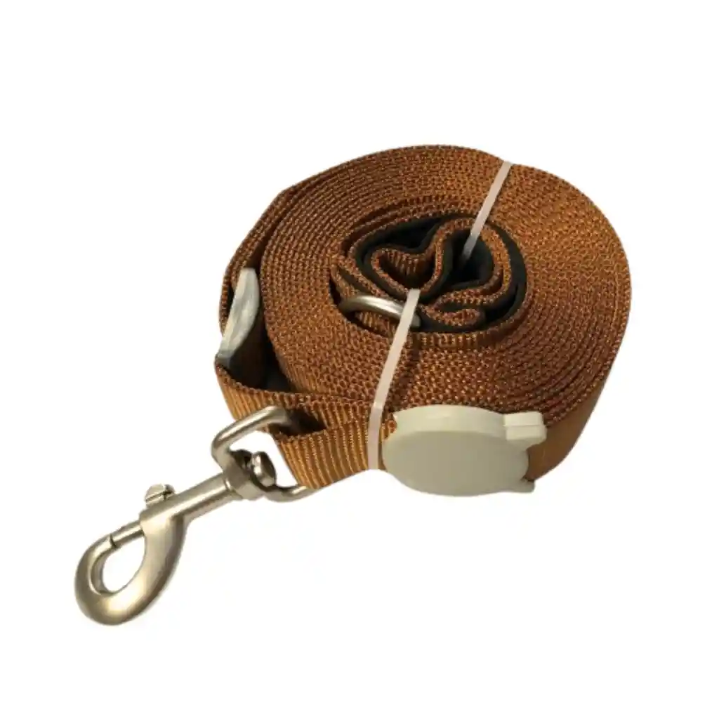 Características: - Correa elaborada de poliéster suave y resistente - Tiene un mango acolchado para amortiguar tirones - Su gancho mosquetón, es giratorio en 360° para evitar enredos - Sus 3 metros de largo, entregan una mayor libertad a tu perrito, para que puedan disfrutar mejormente el paseo o lo puedas entrenar fácilmente - La correa tiene un dispositivo de plástico, que permite ajustarla y acortarla a 1,5 mt. - Dimensiones: Largo: 3 mts Ancho: 2,5 cm - Color: Café