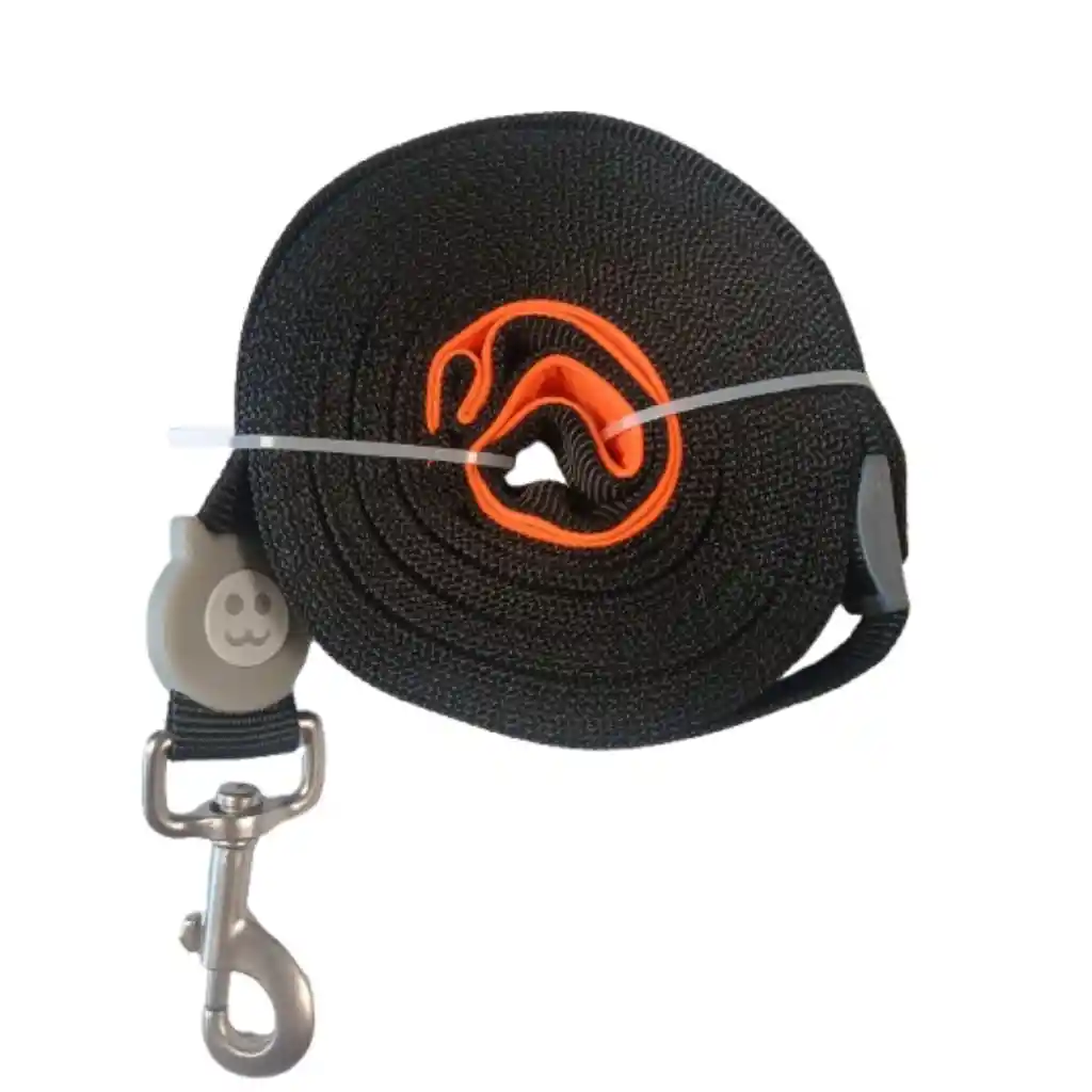 Características: - Correa elaborada de poliéster suave y resistente - Tiene un mango acolchado para amortiguar tirones - Su gancho mosquetón, es giratorio en 360° para evitar enredos - La correa tiene un dispositivo de plástico, que permite ajustarla y acortarla a la mitad - Dimensiones: Largo: 6 mt Ancho: 2,5 cm - Color: Negro/Anaranjado