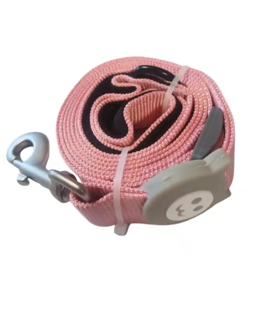 Características: - Correa elaborada de poliéster suave y resistente - Tiene un mango acolchado para amortiguar tirones - Su gancho mosquetón, es giratorio en 360° para evitar enredos - La correa tiene un dispositivo de plástico, que permite ajustarla y acortarla a la mitad - Dimensiones: Largo: 1,5 mt Ancho: 2,5 cm - Color: Rosado/Negro