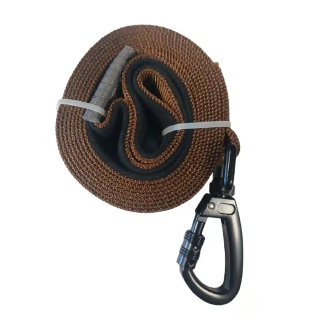 Características: - Correa elaborada de poliéster suave y resistente - Tiene un mango acolchado para amortiguar tirones - Su gancho mosquetón, es giratorio en 360° para evitar enredos - Dimensiones: Largo: 1,5 mts Ancho: 3,8 cm - Color: Café/Negro
