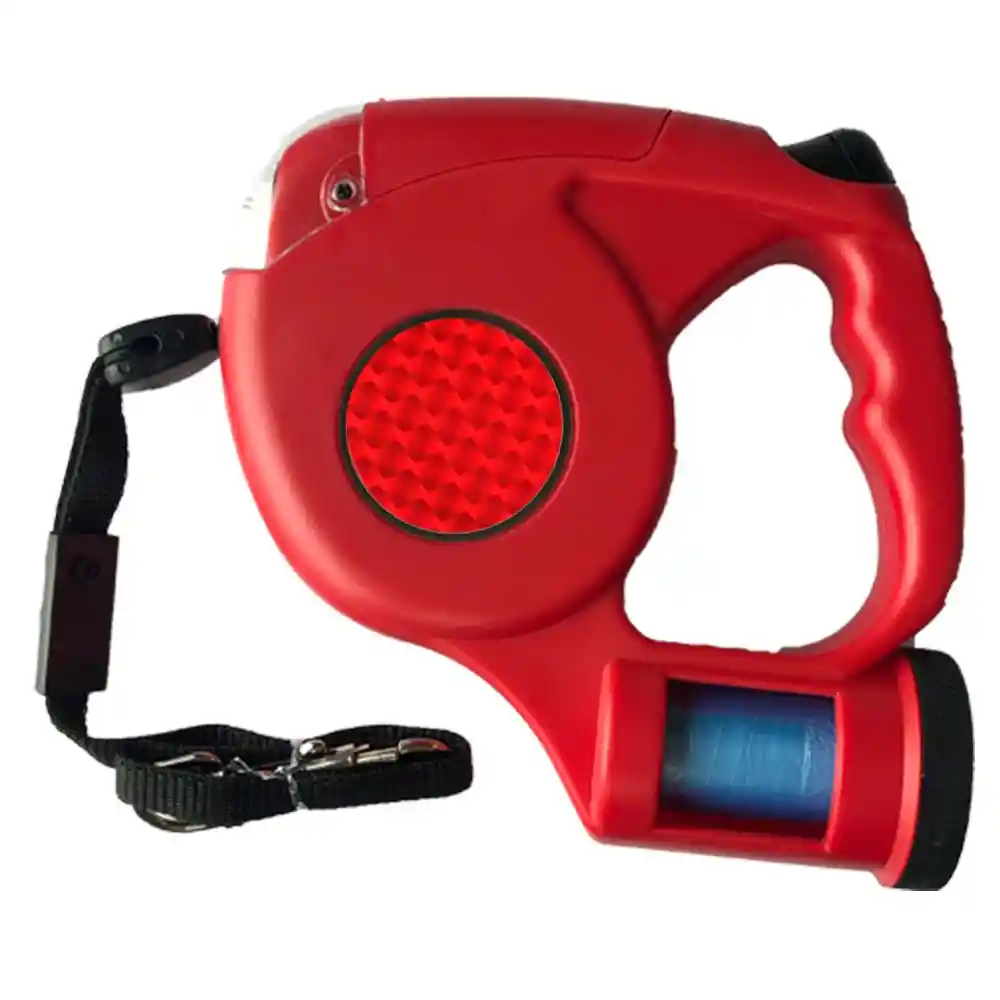 Correa retráctil para perro 3 en 1 dispensador de bolsas de basura, linterna LED correa para perro 5mts de longitud Material de correa duradero, la correa retráctil de 5mts de longitud incorporada en nailon fuerte, que coincidirá con los tamaños de sus mascotas de hasta 10 kg Sistema Simple de freno y desbloqueo, solo un clic puedes detener y liberar a tus mascotas, es fácil y conveniente mantener a tu perro bajo control. Función 3 en 1, la luz LED te proporciona una caminata nocturna iluminada, mejor y más segura, un dispensador de bolsas (bolsa de plástico gratis) que te permite limpiar rápidamente. Mango cómodo, diseño de mango ergonómico grande, es muy ligero y cabe en la mano correctamente. Diseño Superior, que resuelve el problema enredado, atorado o atascado. Especificaciones: Color: Amarillo, Azul, Negro, Rojo Longitud de la cuerda: 5 M Peso del perro adecuado: Hasta 10kg Alimentado por: 2 pilas AA (no incluidas)