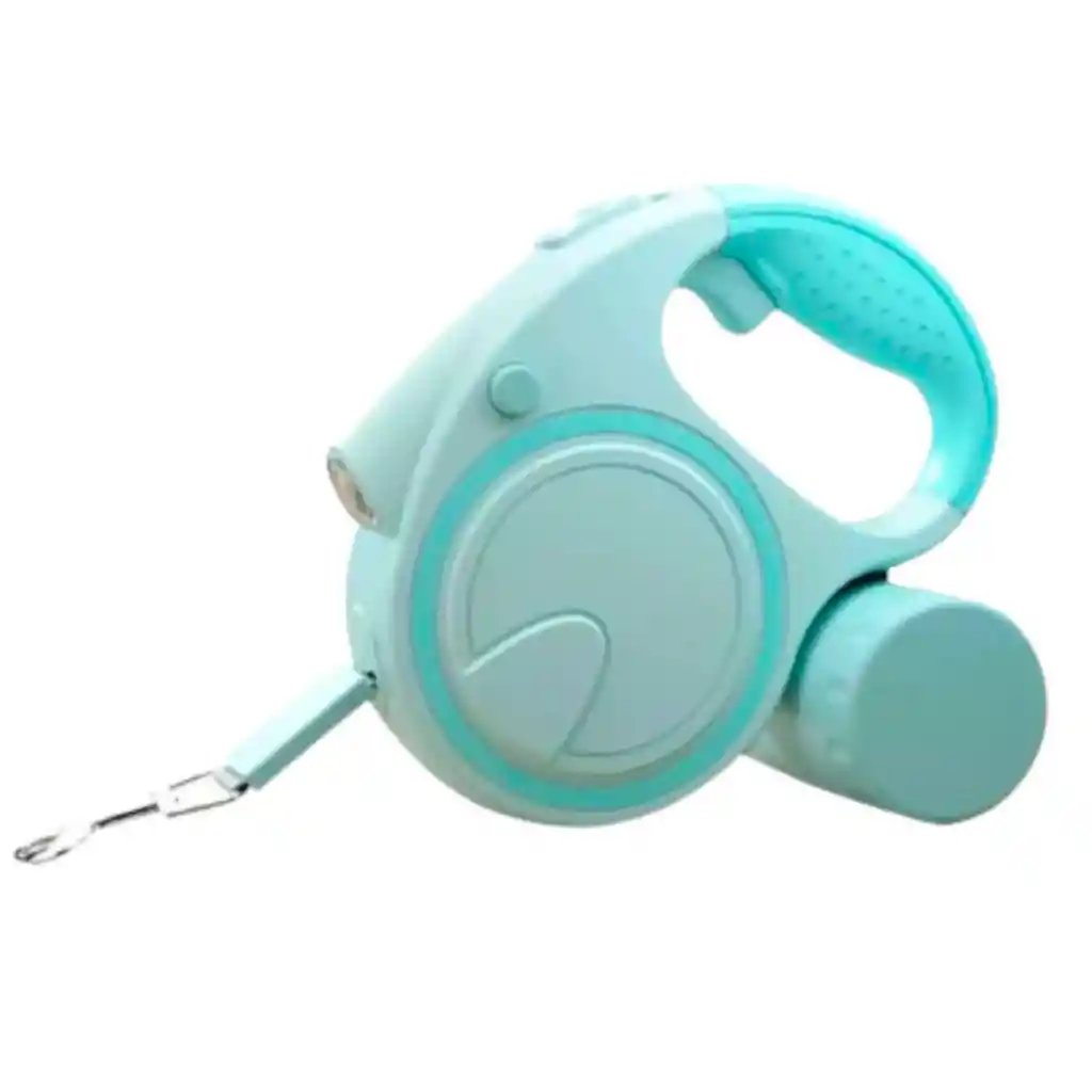 La Correa Retráctil 5m Con Luz Led Para Perros en color verde, es el accesorio perfecto para pasear a tu mascota con comodidad y seguridad. Fabricada con nailon resistente, esta correa retráctil de 5 metros de largo te brinda la libertad de permitir que tu perro explore su entorno mientras mantienes el control. Con un peso máximo soportado de 30 kg, es ideal para perros de diferentes tamaños. Además, su diseño retráctil te permite ajustar la longitud de la correa según tus necesidades. La correa también cuenta con una luz LED incorporada, lo que te permite pasear a tu perro de manera segura incluso en la oscuridad. Con solo presionar un botón, la luz se encenderá, brindando visibilidad tanto para ti como para los demás. Ya sea que estés caminando por la noche o en áreas con poca iluminación, esta correa con luz LED te proporcionará tranquilidad y seguridad.. Esta correa contiene creativamente un dispensador de bolsas, muy necesarias para los paseos con tu mascota.