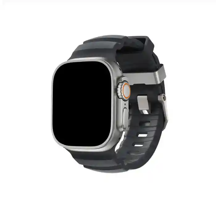 Correa Silicona Rocky para Apple Watch - Gris Diseñamos Rocky Point Band desde cero para complementar tu Apple Watch y mejorar su funcionalidad en aventuras cercanas y lejanas. Desde su FKM ultrarresistente moldeado por compresión hasta su hardware de titanio, cada detalle se sopesó cuidadosamente para maximizar el rendimiento y llevarlo a nuevas alturas. CARACTERISTICAS: Caucho de fluoroelastómero FKM Herrajes de titanio de grado 5 100% impermeable Arboledas de ventilación para transpirabilidad Diseñado para Apple Watch Ultra y Ultra 2 Funciona con Apple Watch 10, 9, 8, 7, 6, SE y todas las versiones anteriores de Apple Watch DISPONIBLE EN: 42 MM Serie 1 / 2 / 3 44 / 45 / 46 MM 49 MM Ultra COMPATIBLE CON: Apple Watch Serie 1 / 2 / 3 / 4 / 5 / 6 / 7 / 8 / 9 / 10 / SE / Ultra