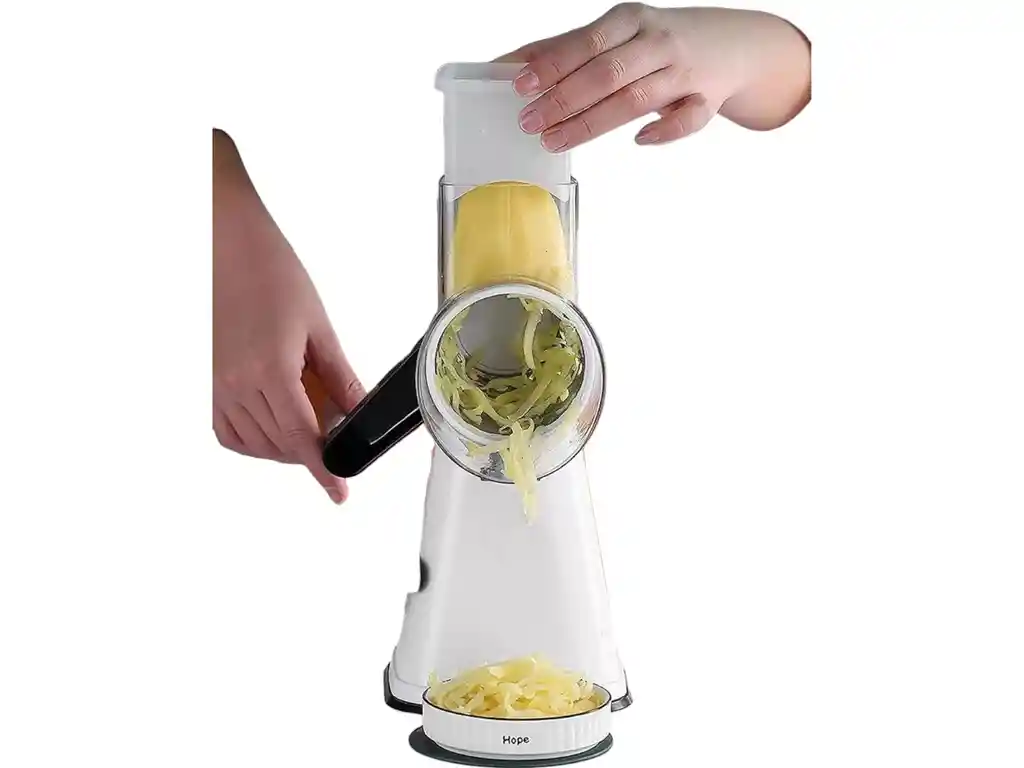 Cortador Picador Vegetales Multifuncional Rallador Cocina: ¡Prepara tus comidas en un abrir y cerrar de ojos! Presentamos nuestro innovador cortador de vegetales multifuncional, diseñado para revolucionar la forma en que preparas tus comidas. Con este práctico utensilio, podrás rallar, picar y rebanar frutas y verduras de forma rápida y eficiente, ahorrando tiempo y esfuerzo en la cocina. Características Destacadas: Diseño Ergonómico y Compacto: Con unas dimensiones de 28 cm x 20 cm x 18 cm, este cortador de vegetales es lo suficientemente compacto para almacenarlo fácilmente en cualquier cocina. Su diseño ergonómico y ligero lo hace cómodo de usar, incluso durante períodos prolongados. Materiales de Alta Calidad: Fabricado con plástico de grado alimenticio resistente y cuchillas de acero inoxidable de alta calidad, este cortador garantiza durabilidad y seguridad. Los materiales utilizados son libres de BPA y aptos para el lavavajillas, facilitando su limpieza. Multifuncional: Este cortador de vegetales te ofrece múltiples opciones de corte, permitiéndote rallar, picar y rebanar diferentes tipos de alimentos con facilidad. Ideal para preparar ensaladas, guarniciones, purés y mucho más. Fácil de Usar: Simplemente coloca los alimentos en el alimentador, gira la manivela y ¡listo! Las cuchillas afiladas harán el trabajo por ti. La base con ventosa proporciona una sujeción segura a la superficie de trabajo, evitando accidentes. Seguro y Fácil de Limpiar: Las cuchillas están protegidas para evitar cortes accidentales. Todas las partes desmontables se pueden lavar fácilmente a mano o en el lavavajillas. Beneficios: Ahorra tiempo: Prepara tus comidas en menos tiempo gracias a su eficiencia. Versátil: Perfecto para una amplia variedad de alimentos y recetas. Fácil de usar: Ideal para personas de todas las edades y niveles de habilidad. Seguro: Diseño ergonómico y cuchillas protegidas. Duradero: Fabricado con materiales de alta calidad para una larga vida útil. Higiénico: Fácil de limpiar y apto para lavavajillas. ¿Por qué elegir nuestro Cortador de Vegetales Multifuncional? Diseño compacto y ergonómico: Perfecto para cualquier cocina. Multifuncional: Ralla, pica y rebana con facilidad. Seguro y fácil de usar: Ideal para toda la familia. Duradero y fácil de limpiar: Fabricado con materiales de alta calidad. ¡Descubre la forma más rápida y sencilla de preparar tus comidas con nuestro cortador de vegetales multifuncional!