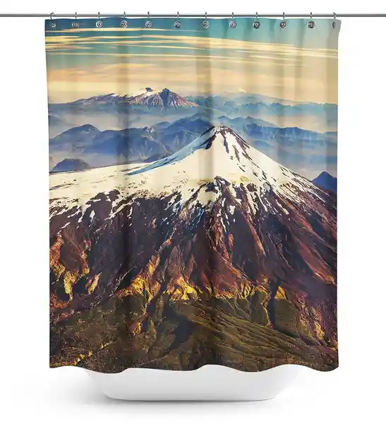 Cortina de Baño Volcán Villarrica Volcán Villarrica: Ubicado Entre Los Lagos Villarrica y Calafquén es Uno de Los Volcanes Con Mayor Registro Históricos de Erupciones de Sudamérica. Su Forma Cónica Casi Perfecta Permite Reconocerlo Desde la Distancia. Posee un Cráter Abierto de 200 Metros de Diámetro Con Una Fumarola Continua y un Lago de Lava Cuasi Permanente. A Sus Pies se Encuentra la Ciudad de Pucón. Incluye: 1 Cortina y 12 Ganchos Plásticos. Material: Poliéster Tamaño: 180 x 180 cm