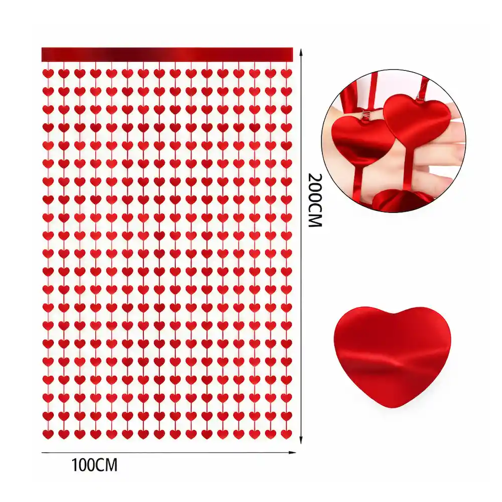 Cortina Metallica Corazon Rojo 100x200 cm