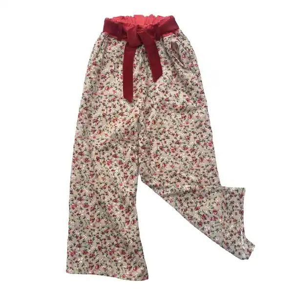 Pantalón Ancho de Cotelé Beige Estampado Con Florcitas Pretina De Algodón y Lazo de Cotelé Rojo. Composición: Algodón y Poliéster. Hecho en Perú.