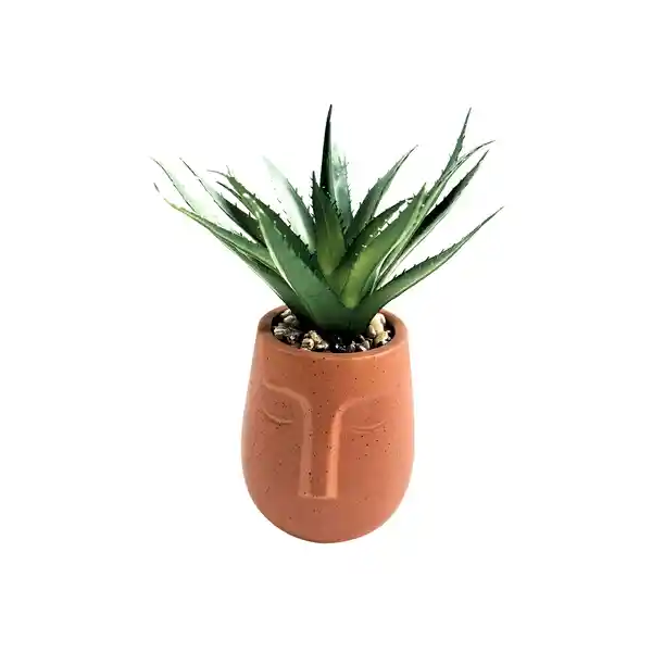 Suculenta Artificial en Macetero de Cara Étnica Con Planta Verde Oscuro 85 x 85 x 19 cm.