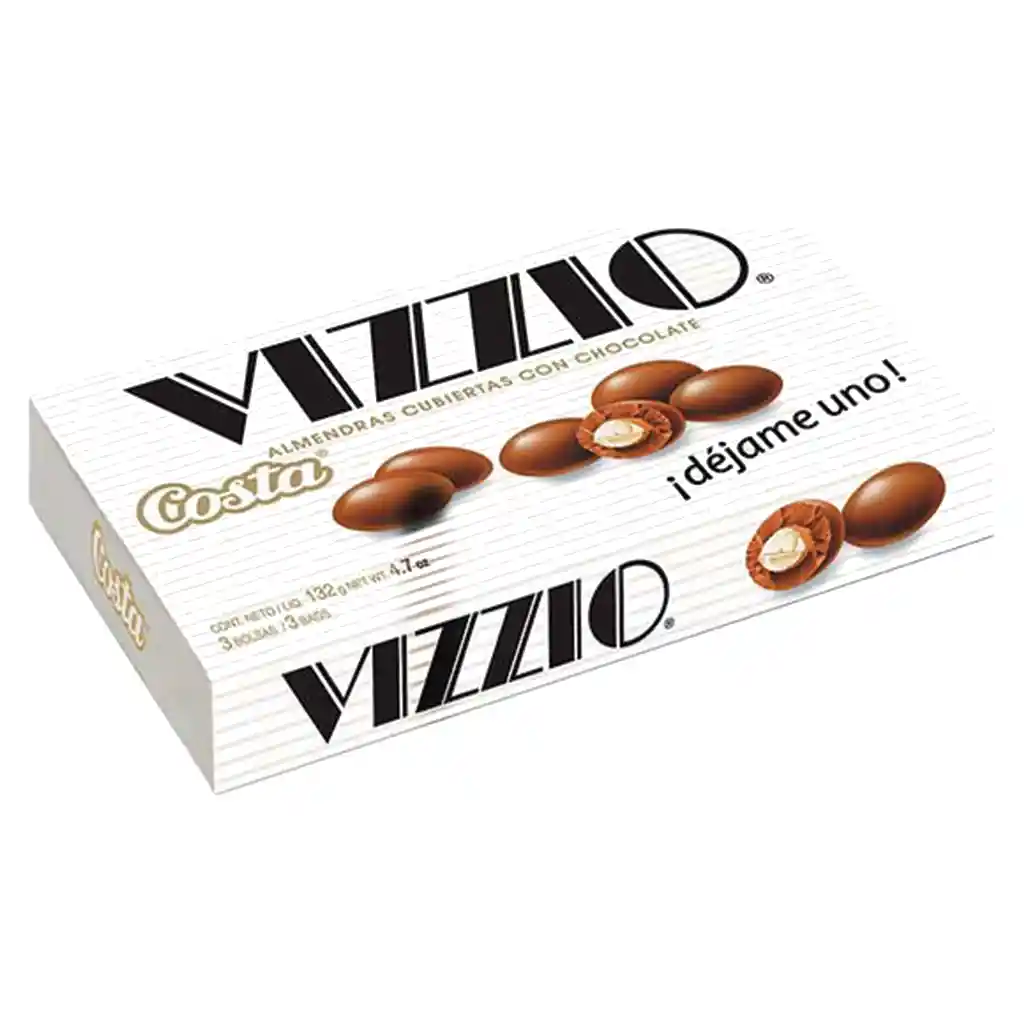 Almendras cubiertas con auténtico chocolate de la marca Vizzio, son un complemento ideal para esa tarde familiar, entre amigos, en pareja o hasta para disfrutar solo por su rico sabor y textura. packing: Caja