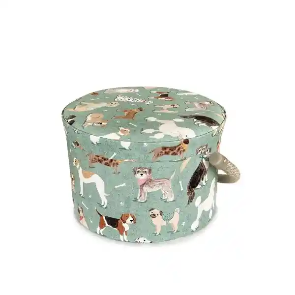 Práctico Y Lindo Costurero Redondo Forrado En Tela Con Moderno Print De Perritos. Su Tamaño Y Peso Es Ideal Para Llevarlo O Guardarlo Donde Quieras. Está Cuidadosamente Acolchado, Contiene Bolsillos Y Un Alfiletero Incorporado En Su Interior.¡mantén Tus Accesorios Organizados Para Todos Tus Proyectos! Medidas: 24 X 24 X 14cm No Contiene Accesorios.