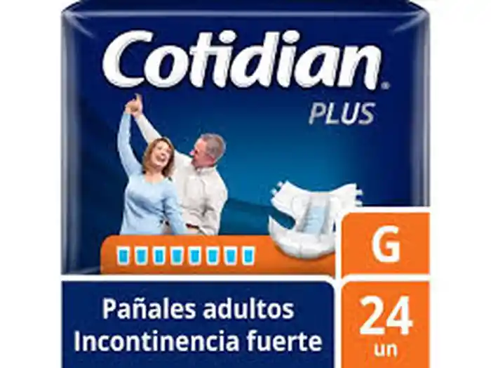 Pañales para adultos para incontinencia fuerte. Cotidian Plus ofrece máxima absorción que permite menos cambios en el día, brindando un mayor ahorro. Pañales para adultos para incontinencia fuerte de mayor absorción que permite menos cambios en el día, brindando un mayor ahorro. packing: Bolsa