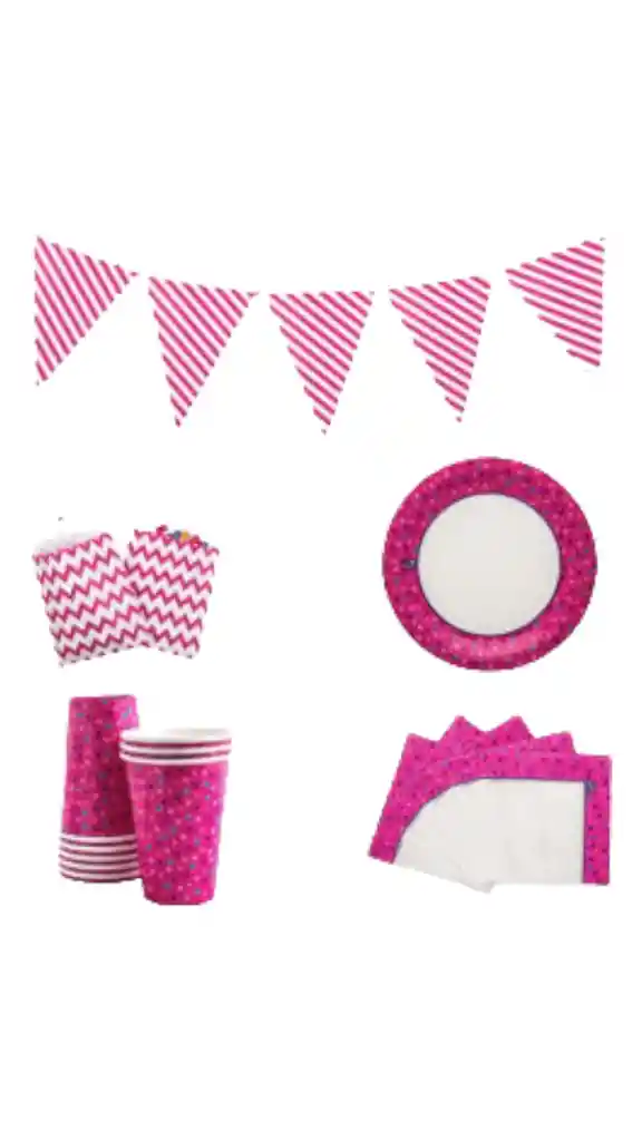 Ideal para celebrar en familia, este pack contiene: 10 platos 10 vasos 12 servilletas 1 guirnalda 12 bolsitas de papel