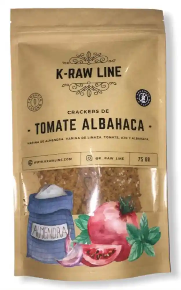 Crackers de tomate deshidratados a 42°C que mantienen intactos los nutrimentos, vitaminas y enzimas de los ingredientes. Instrucciones: almacenar en un lugar seco (duración: 6 meses) Solo 4.2 gramos de carbohidratos por porción!