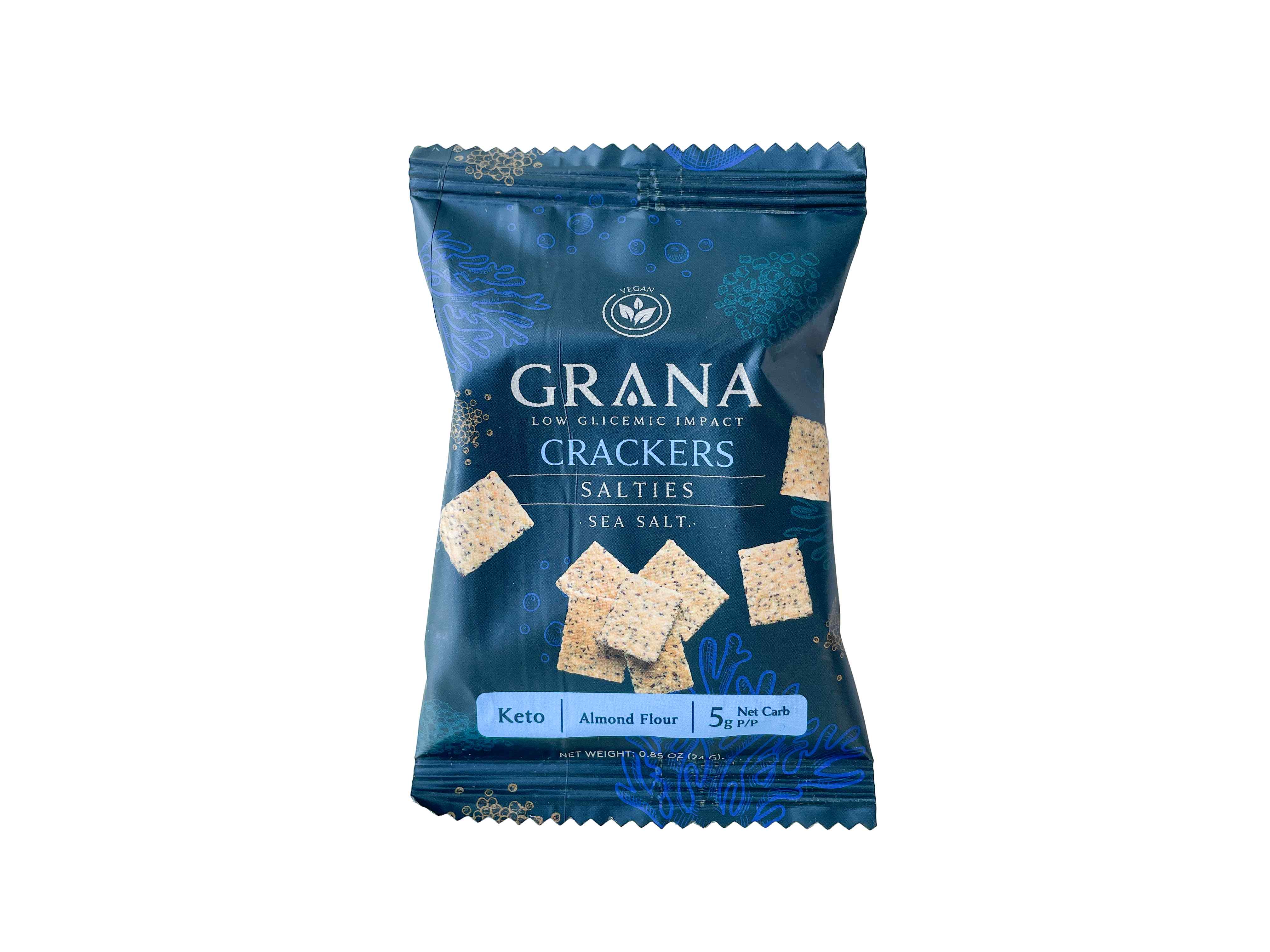 Estas deliciosas crackers Keto están hechas con los mejores ingredientes, son crujientes y ricas en sabor. Perfectas para llevar contigo y disfrutar cuando quieras. Satisfacen los antojos sin romper tu dieta. A veces, lo más simple es lo mejor. Estas crackers crujientes con un toque de sal de mar realzan cualquier combinación. Perfectas para untar o comer solas cuando buscas algo liviano, sin harinas ni aditivos. Formato: 1 bolsa individual de 25 gr Ingredientes: Harina de almendras, fibra de maíz, semillas de maravilla, linaza, sésamo, chía y sal de mar. Alérgenos: Contiene almendras.Puede contener trazas de otros frutos secos, gluten, soja y lactosa.