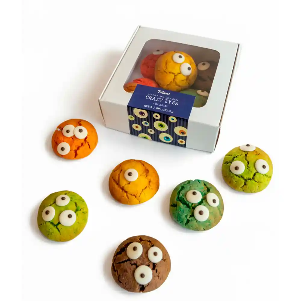 Las Crazy Eyes Tremus son unas irresistibles galletas craqueladas edición Halloween, elaboradas de forma artesanal y pensadas para quienes buscan disfrutar saludablemente. Su textura suave por dentro y levemente crocante por fuera se logra gracias a una base de harina de almendras sin piel, endulzada con alulosa 100% y aromatizada con vainilla y ralladura de limón. Cada unidad está decorada a mano. Con solo 1,6 g de carbohidratos por porción, son una opción keto, baja en carbohidratos y sin azúcar añadida, perfecta para disfrutar en celebraciones o como snack saludable durante Halloween. El pack de 6 unidades ofrece sabor, color y equilibrio en cada bocado, con la calidad artesanal y el sello inconfundible de Tremus.