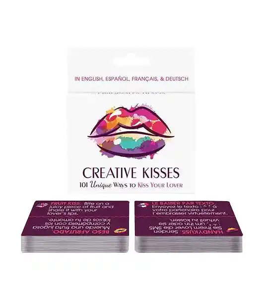 Creative Kisses llegó para hacer de los juegos previos, momentos más divertidos y cautivantes. Con 101 tarjetas podrás poner en práctica diversas y excitantes formas de besar. Sorprende a tu pareja con originales besos, solo debes escoger una tarjeta y ejecutar las instrucciones. Puedes turnarte con tu compañerx de manera que ambos puedan dar y recibir besos increíbles. Si quieres animar tu vida amorosa, selecciona una tarjeta y dale a tu amante un beso original Contenido: 101 tarjetas en 4 idiomas; español, inglés, francés y alemán Instrucciones: Escoge una tarjeta del mazo y realiza la acción que en ella se indica. Haz turnos entre los participantes de modo que todos participen.