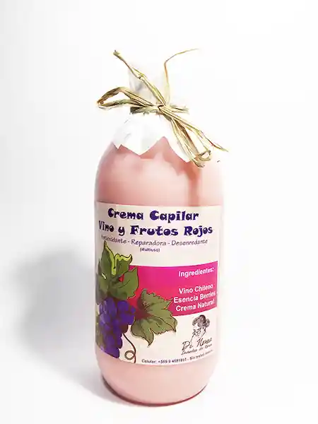 Crema de Masaje Capilar Antioxidante. Reparadora y Desenredante. Producto Natural Hecho a Mano. Sin Sal. Sin Sodio y Libre de Parabenos. Ingredientes: Vino Chileno. Esencia Berries y Crema Natural.